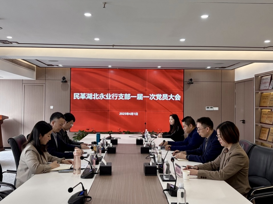 2025年4月1日,民革湖北永业行支部召开一届一次党员大会。会议由新当选支部主委黄长勇主持,支部全体党员参会。会议以"强基固本谋发展,履职担当谱新篇"为主题,系统谋划新时期基层组织建设工作。